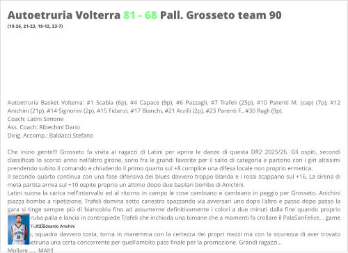 #21 Arzilli (2p), #23 Parenti F., #30 Ragli (9p).