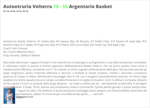 #20 Cucini (5p), #21 Arzilli (1p), #30 Ragli (9p)
