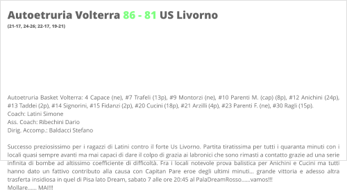 Cucini (3p), #21 Arzilli (1p), #23 Parenti F., #30 Ragli (5p).