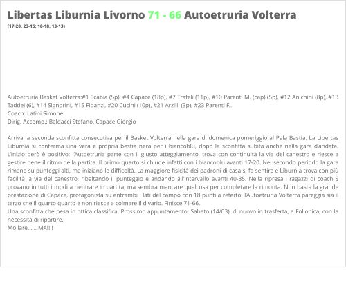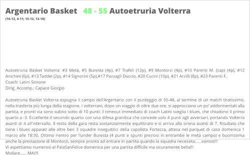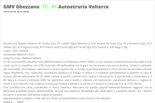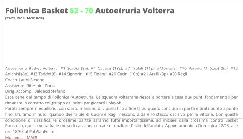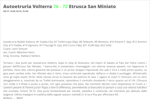 #21 Arzilli (2p), #23 Parenti F., #30 Ragli (9p).